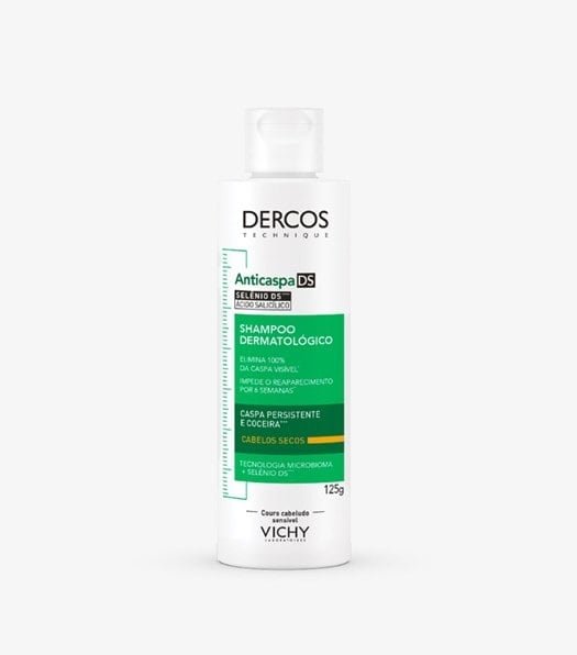 O Shampoo Vichy Dercos Anticaspa DS para Cabelos Secos é enriquecido com a tecnologia Microbioma com Selênio DS, que ajuda a reequilibrar o microbioma do couro cabeludo e eliminar 100% das caspas visíveis, agindo desde a primeira aplicação e evitando a reincidência por até 6 semanas.